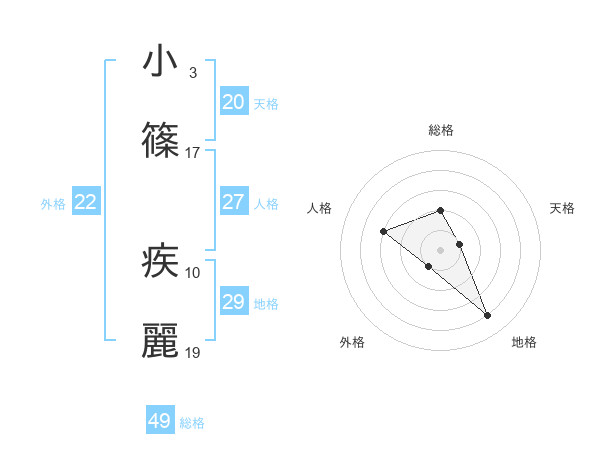 小篠 疾麗さんの天格は20画の1点!