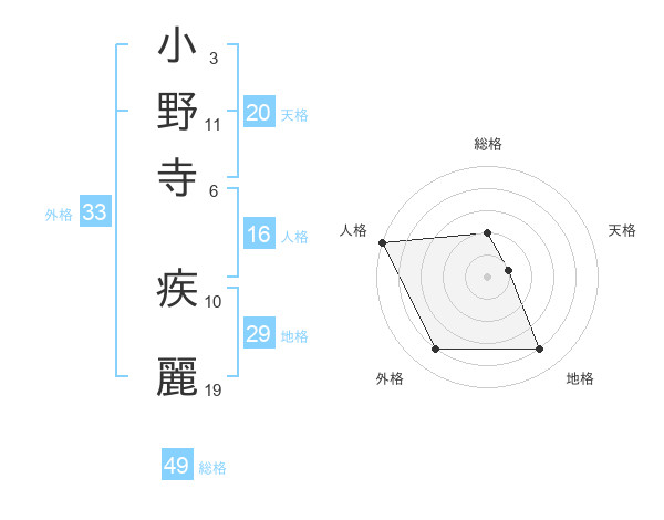 小野寺 疾麗さんを姓名の画数から五運を鑑定