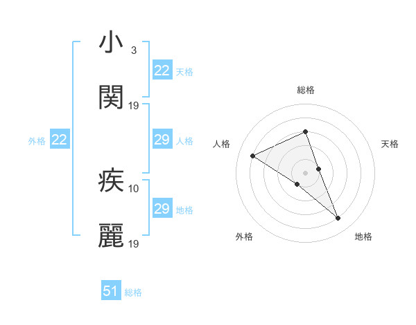 小関 疾麗さんの総格は51画の3点!