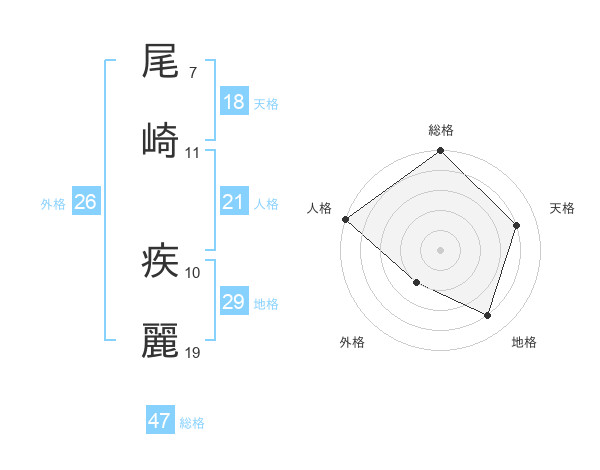 尾崎 疾麗さんを姓名の画数から五運を鑑定