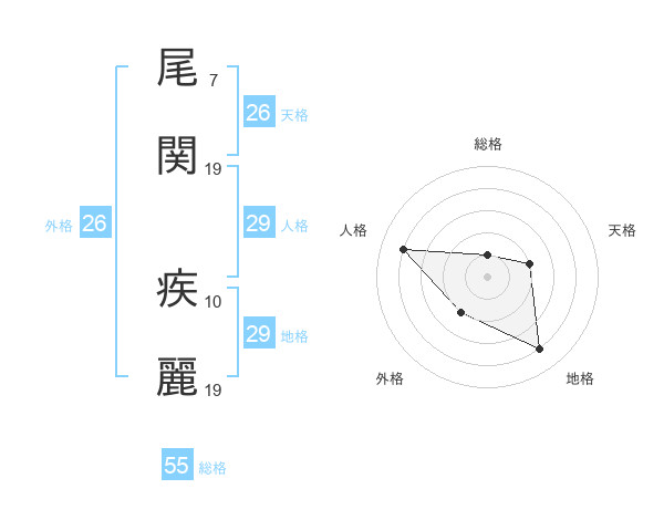 尾関 疾麗さんを姓名の画数から五運を鑑定