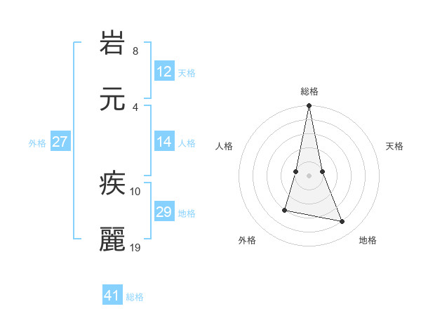岩元 疾麗さんの総格は41画の5点!