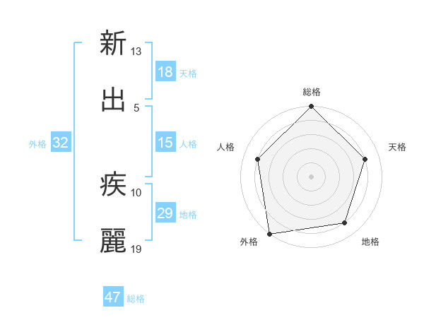 新出 疾麗さんの総格は47画の5点!