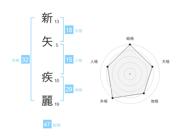 新矢 疾麗さんの総格は47画の5点!