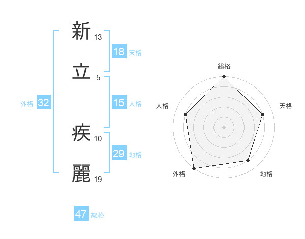 新立 疾麗さんを姓名の画数から五運を鑑定