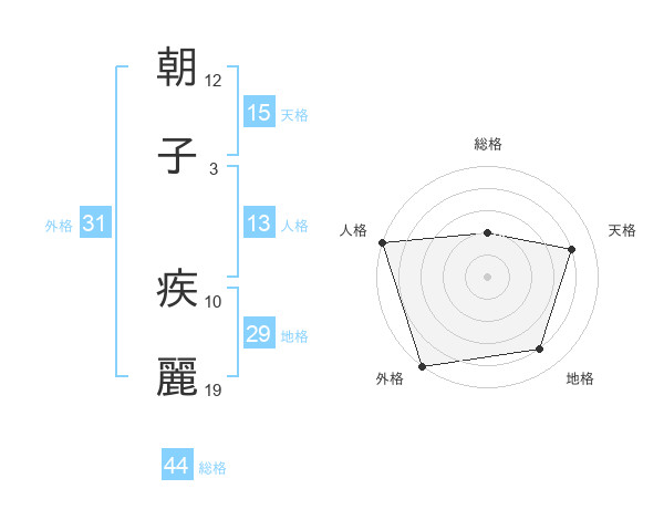 朝子 疾麗さんの総格は44画の2点!