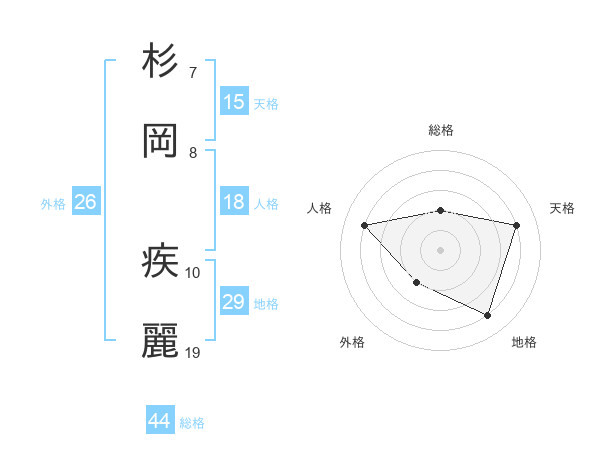 杉岡 疾麗さんの総格は44画の2点!