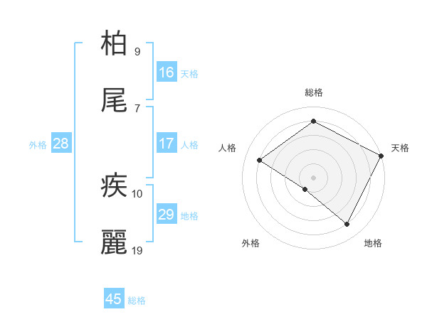 柏尾 疾麗さんの総格は45画の4点!