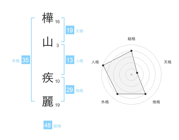 樺山 疾麗さんを姓名の画数から五運を鑑定