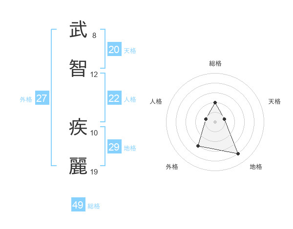 武智 疾麗さんの総格は49画の2点!