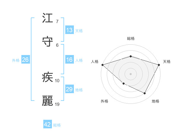 江守 疾麗さんを姓名の画数から五運を鑑定