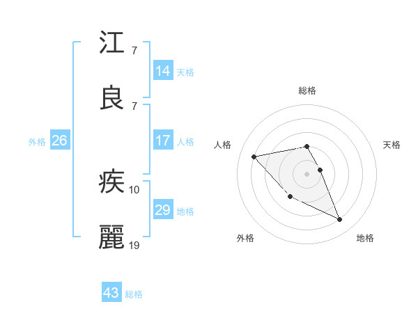 江良 疾麗さんを姓名の画数から五運を鑑定