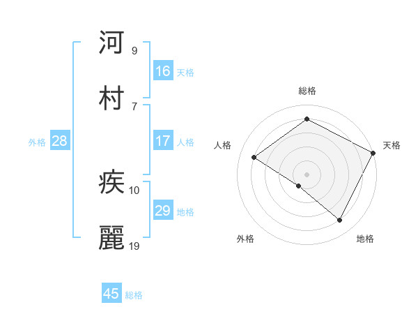河村 疾麗さんの総格は45画の4点!