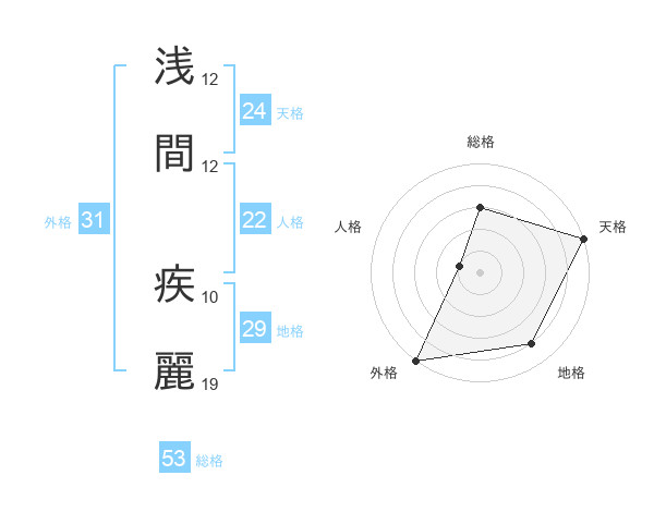 浅間 疾麗さんを姓名の画数から五運を鑑定