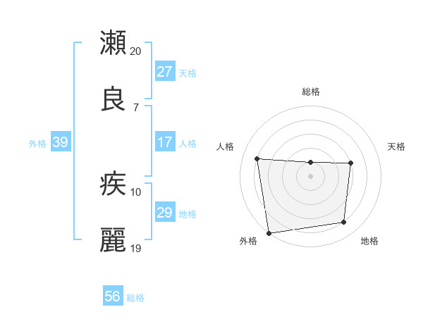 瀬良 疾麗さんの外格は39画の5点!