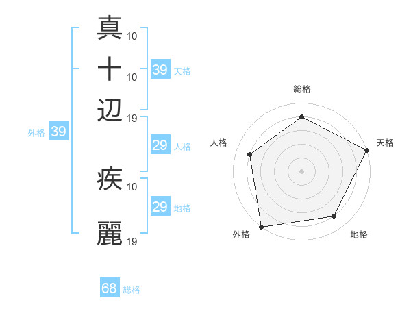 真十辺 疾麗さんの外格は39画の5点!