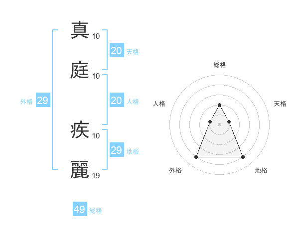 真庭 疾麗さんを姓名の画数から五運を鑑定