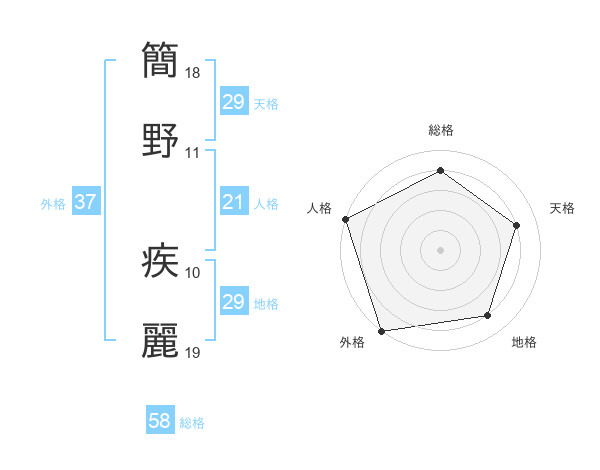 簡野 疾麗さんを姓名の画数から五運を鑑定
