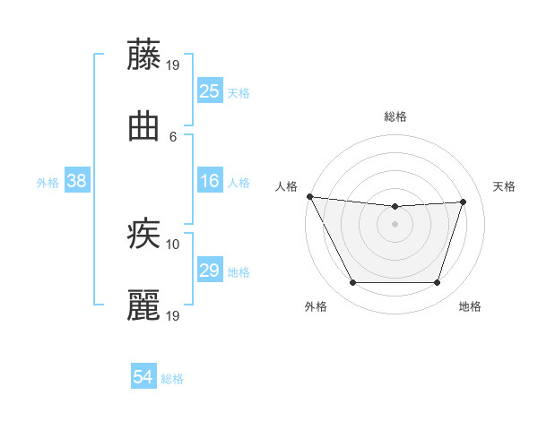 藤曲 疾麗さんを姓名の画数から五運を鑑定