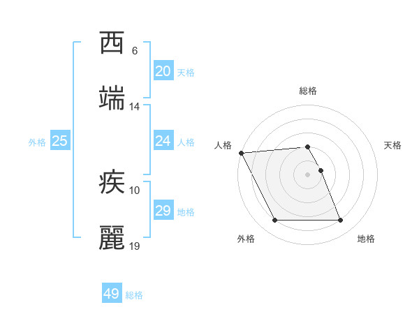 西端 疾麗さんを姓名の画数から五運を鑑定