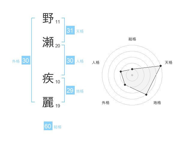 野瀬 疾麗さんを姓名の画数から五運を鑑定
