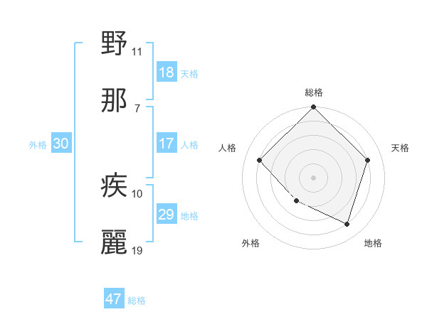 野那 疾麗さんを姓名の画数から五運を鑑定