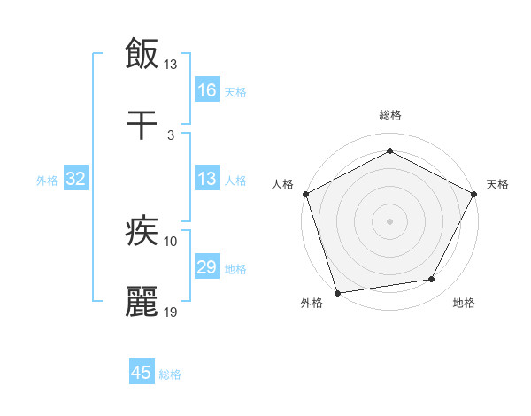 飯干 疾麗さんを姓名の画数から五運を鑑定