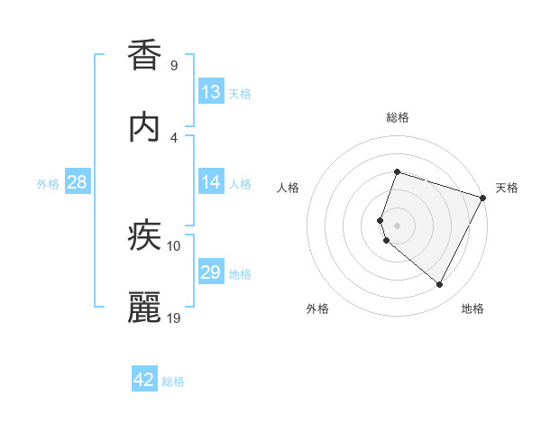 香内 疾麗さんの総格は42画の3点!