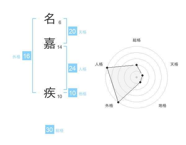 名嘉 疾さんを姓名の画数から五運を鑑定