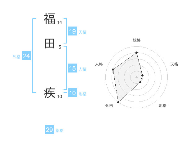 福田 疾さんの総格は29画の4点!
