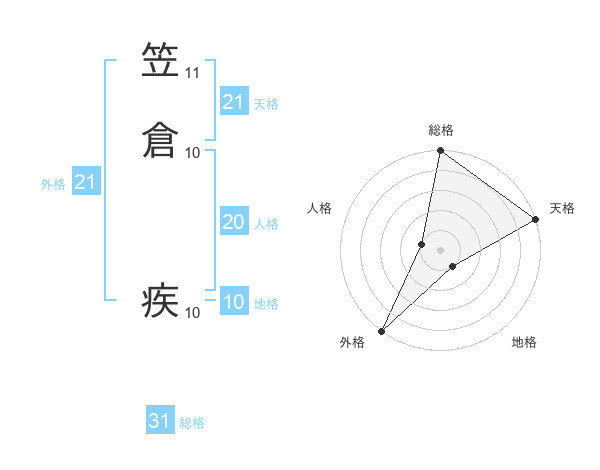 笠倉 疾さんを姓名の画数から五運を鑑定