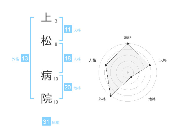 上松 病院さんの総格は31画の5点!
