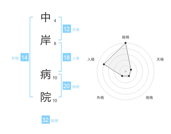中岸 病院さんの総格は32画の5点!