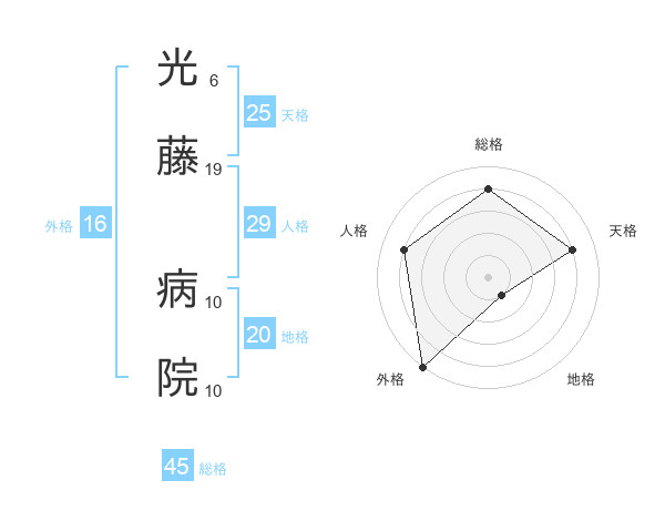 光藤 病院さんの総格は45画の4点!