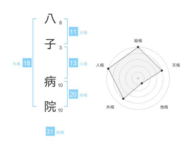 八子 病院さんの総格は31画の5点!