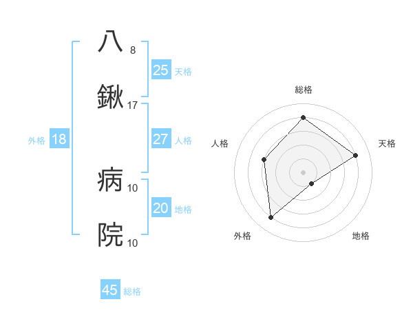 八鍬 病院さんの総格は45画の4点!
