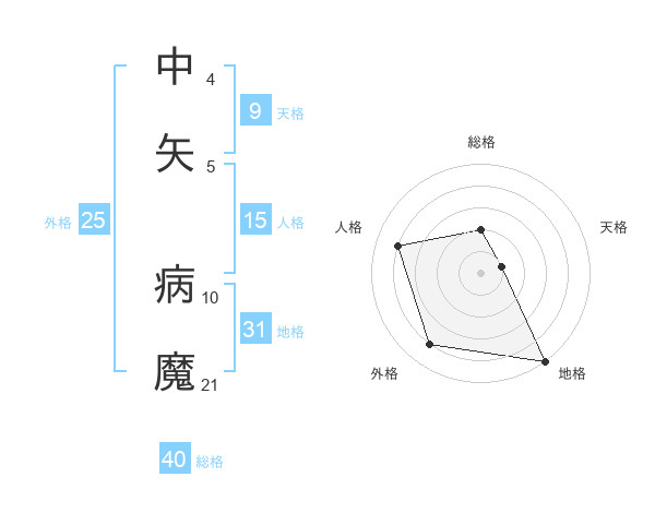 中矢 病魔さんの総格は40画の2点!
