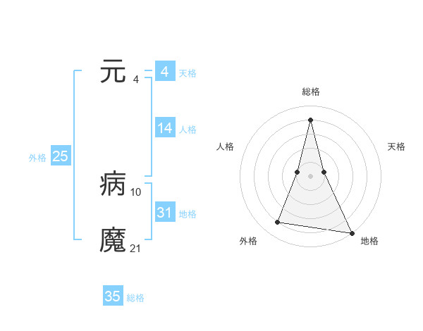 元 病魔さんの総格は35画の4点!