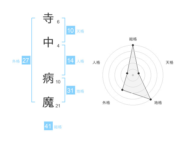 寺中 病魔さんの総格は41画の5点!