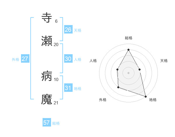 寺瀬 病魔さんを姓名の画数から五運を鑑定