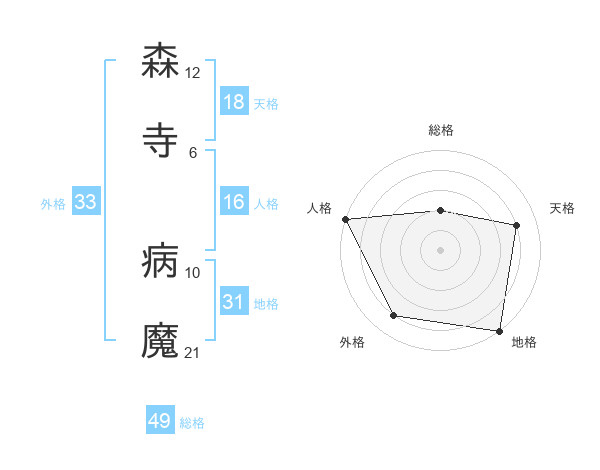 森寺 病魔さんの総格は49画の2点!