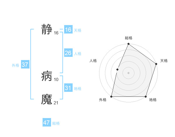 静 病魔さんの総格は47画の5点!