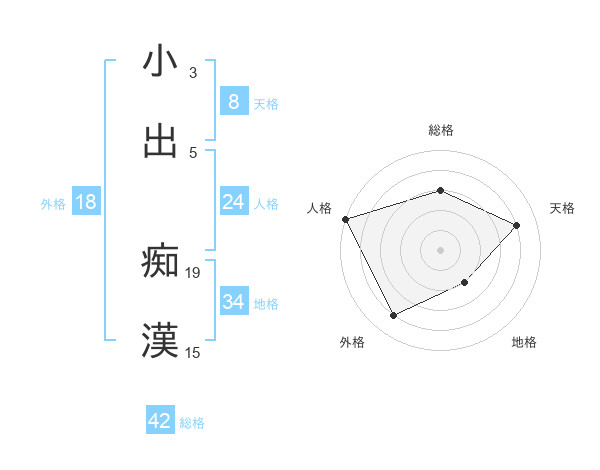 小出 痴漢さんを姓名の画数から五運を鑑定