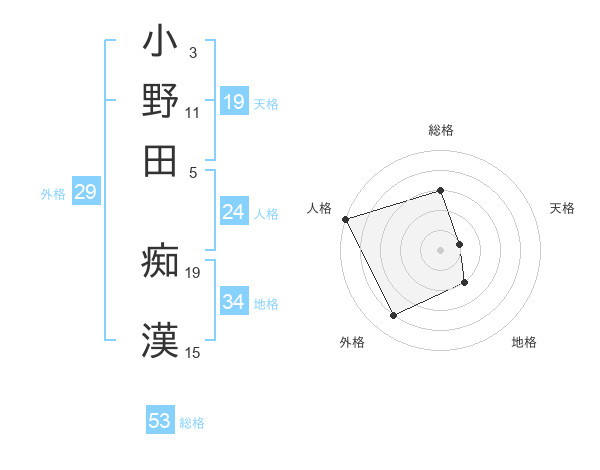 小野田 痴漢さんの総格は53画の3点!