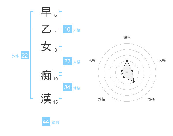 早乙女 痴漢さんを姓名の画数から五運を鑑定