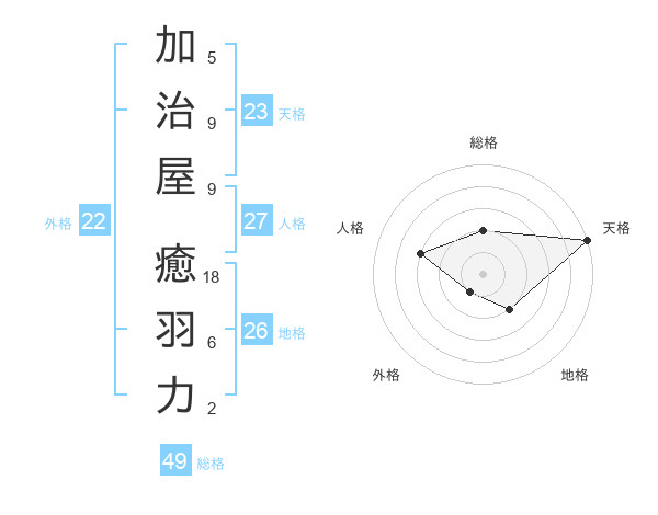 加治屋 癒羽力さんを姓名の画数から五運を鑑定