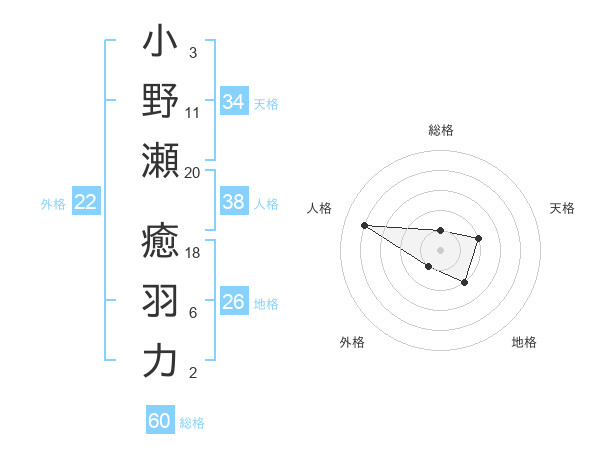 小野瀬 癒羽力さんを姓名の画数から五運を鑑定