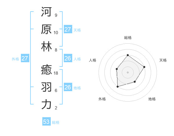 河原林 癒羽力さんを姓名の画数から五運を鑑定