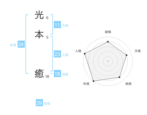 光本 癒さんの総格は29画の4点!