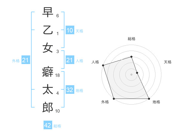 早乙女 癖太郎さんを姓名の画数から五運を鑑定